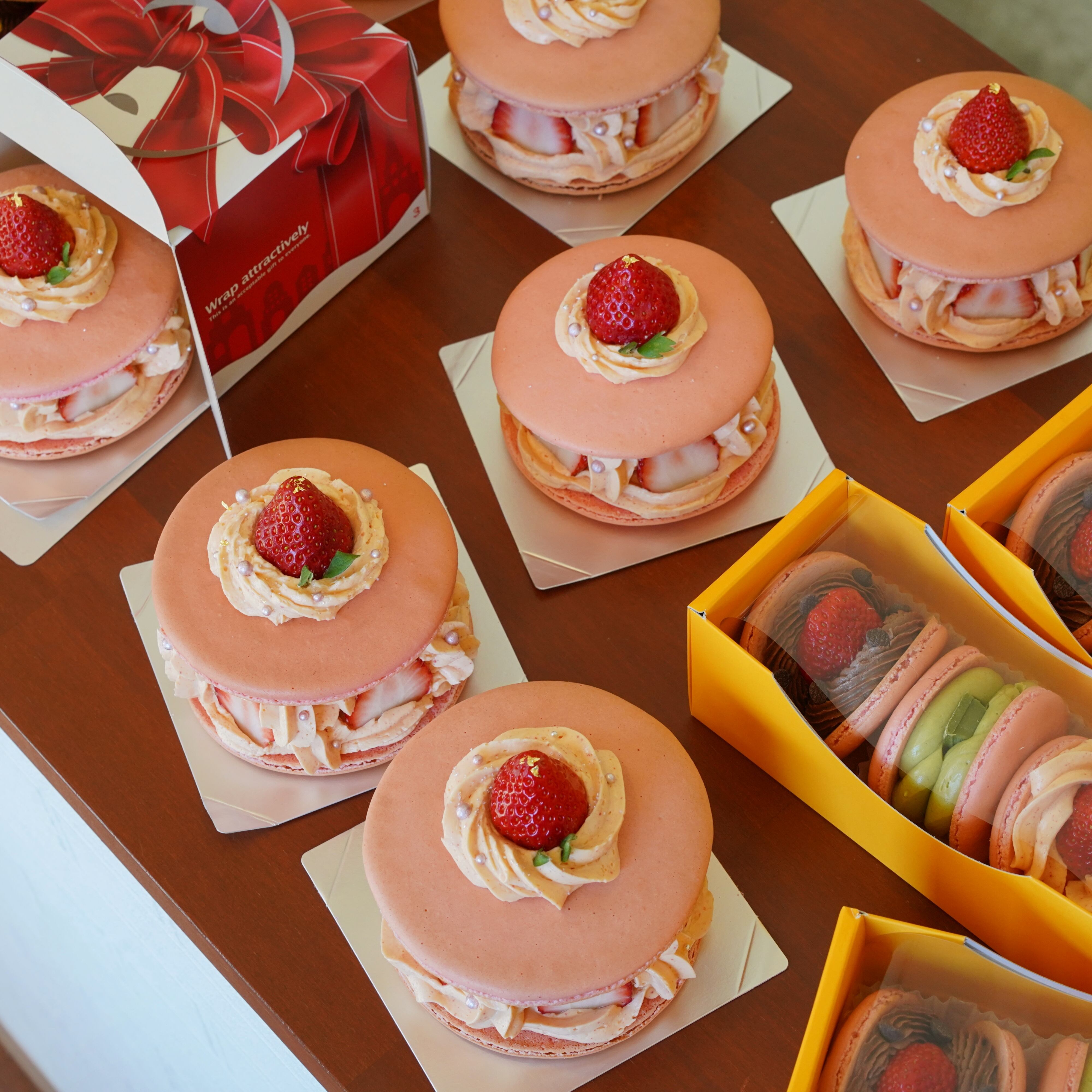 一般マカロンの3倍程度のケーキの大きさでサイズは10センチ、高さは9センチの大きさです。